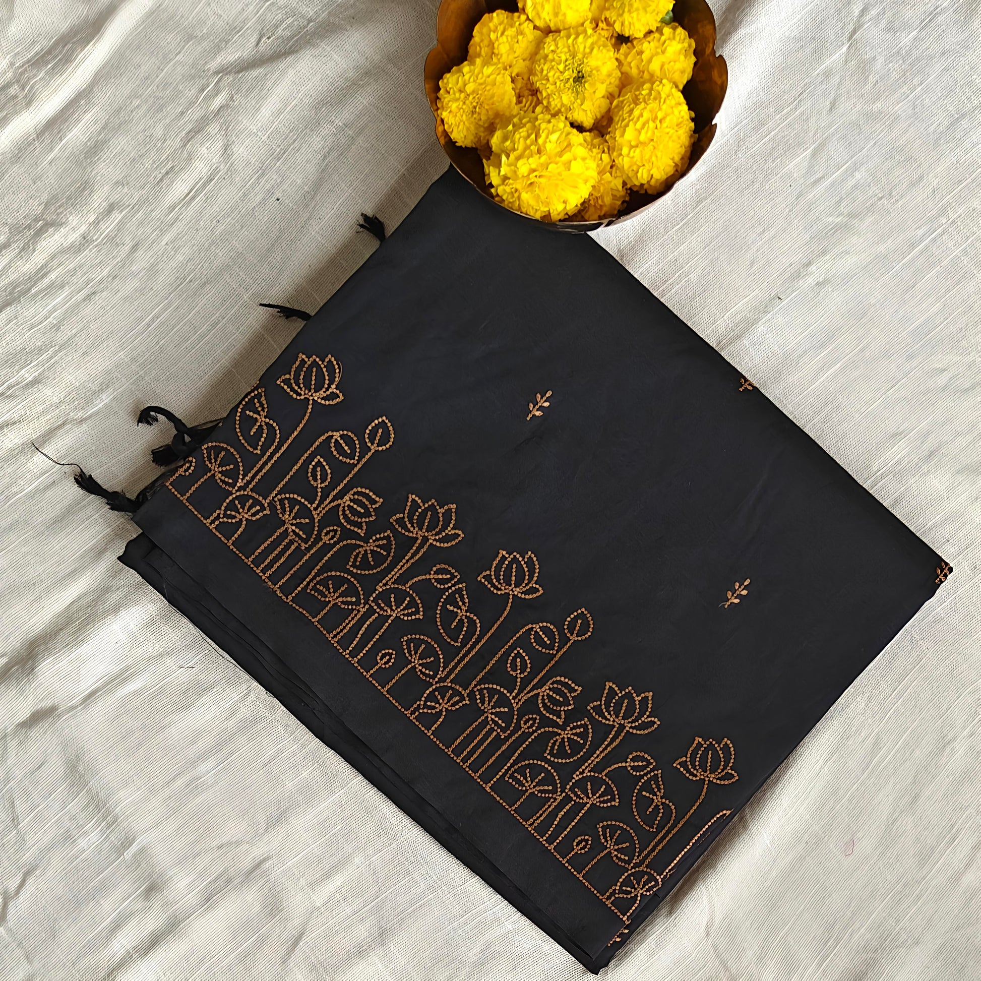 Black-Gold Embroidered Saree