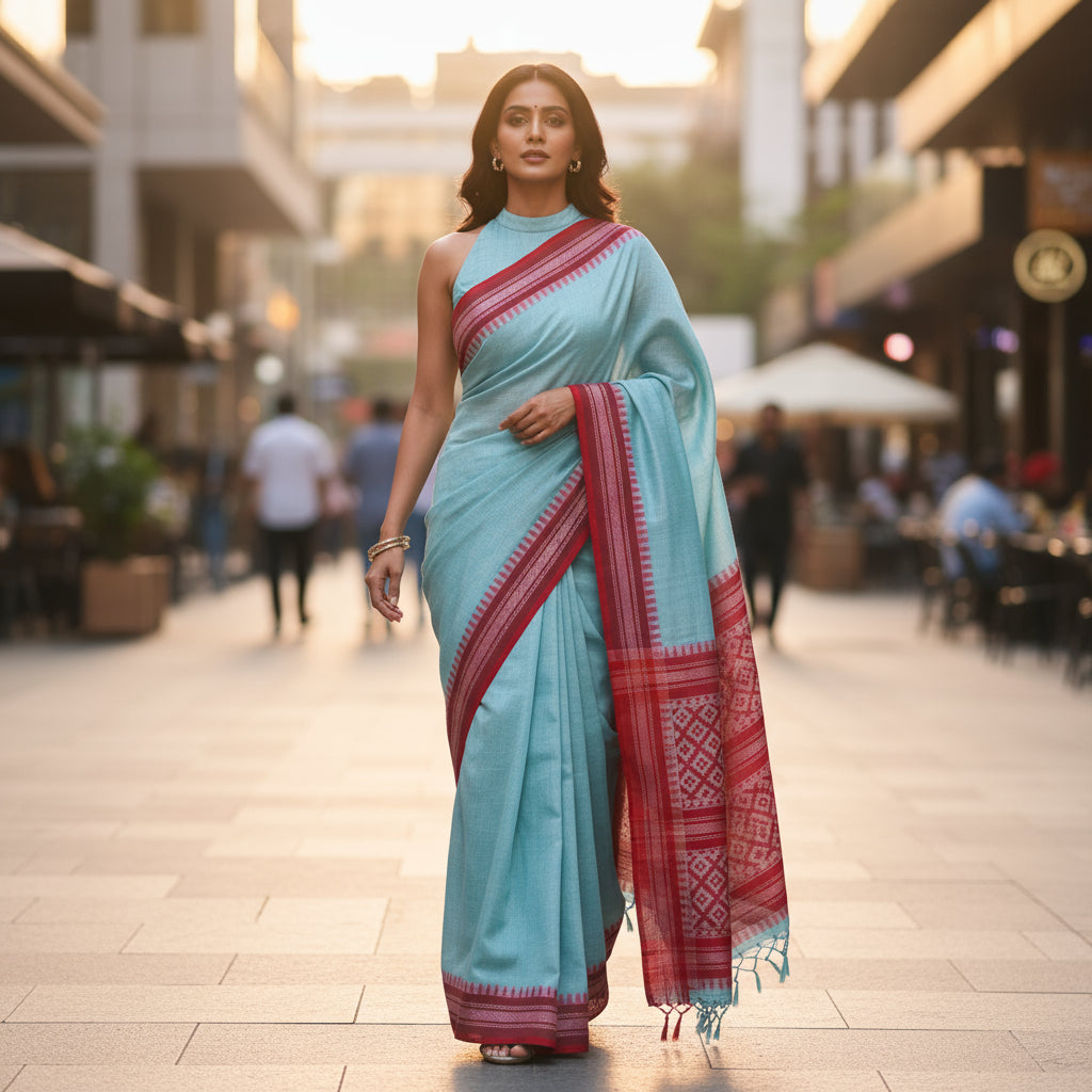Crafted from premium cotton fabric, this saree offers exceptional breathability and comfort for all-day wear, making it ideal for both casual gatherings and festive occasions.
