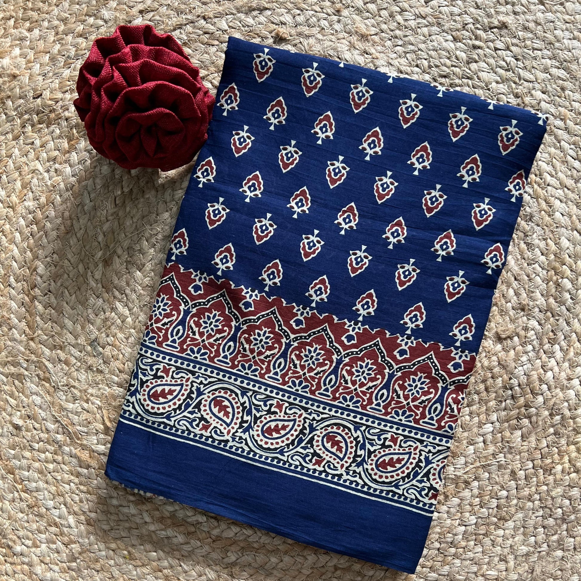 Made from pure cotton, this saree offers breathability and comfort all day long. The rich indigo color adds a touch of sophistication to your wardrobe.