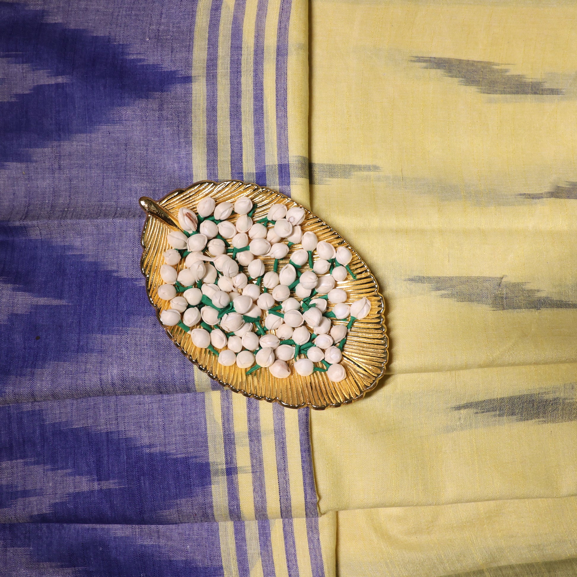 Pair this Ikkat cotton saree with minimal gold jewelry to highlight its intricate temple border. Opt for a sleek bun or soft waves to complement the traditional yet vibrant look.
