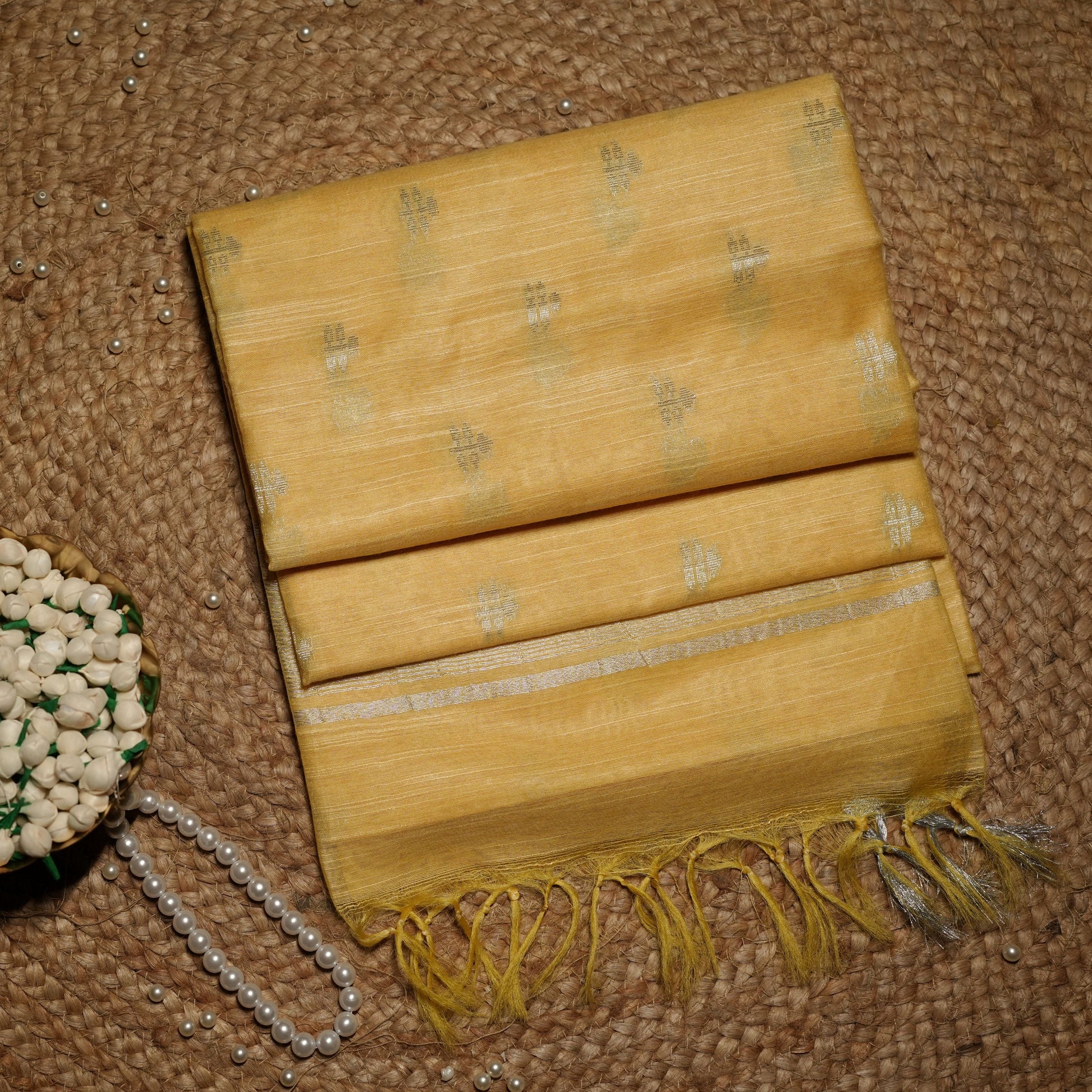 The grace of silk meets the comfort of cotton in this Half Tussar Cotton Silk saree.